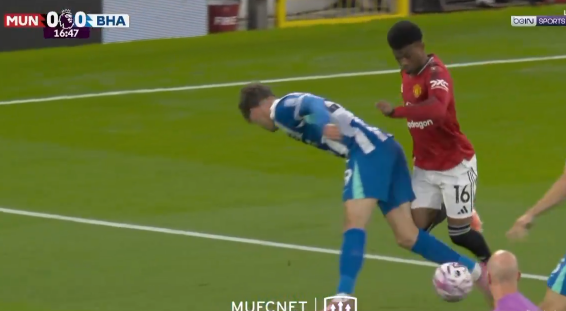 The referee then watched on as Amad drove into the penalty box and was fouled by Maxim De Cuyper, with large shouts for a penalty inside Old Trafford. He ignored it.